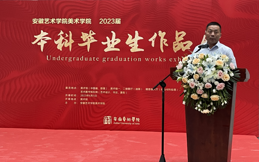 65午,美术学院在校美术馆举行2023届毕业生作品展开幕式。党委副书记校长樊嘉禄出席开幕式并致辞。