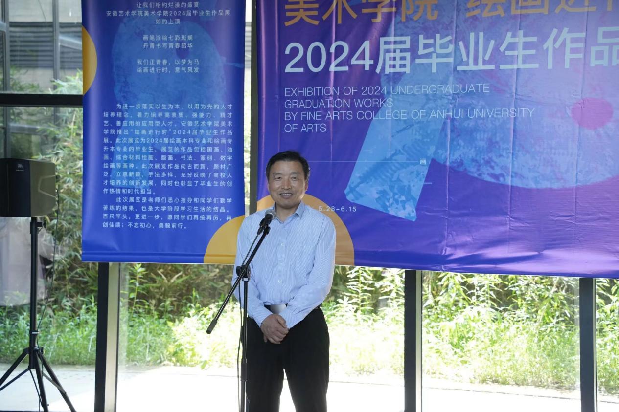 5月28日下午,星空体彩官网app官方网站美术学院“绘画进行时”2024届毕业生作品展在美术楼一楼展厅隆重开幕。副校长陈林出席并宣布作品展开幕。