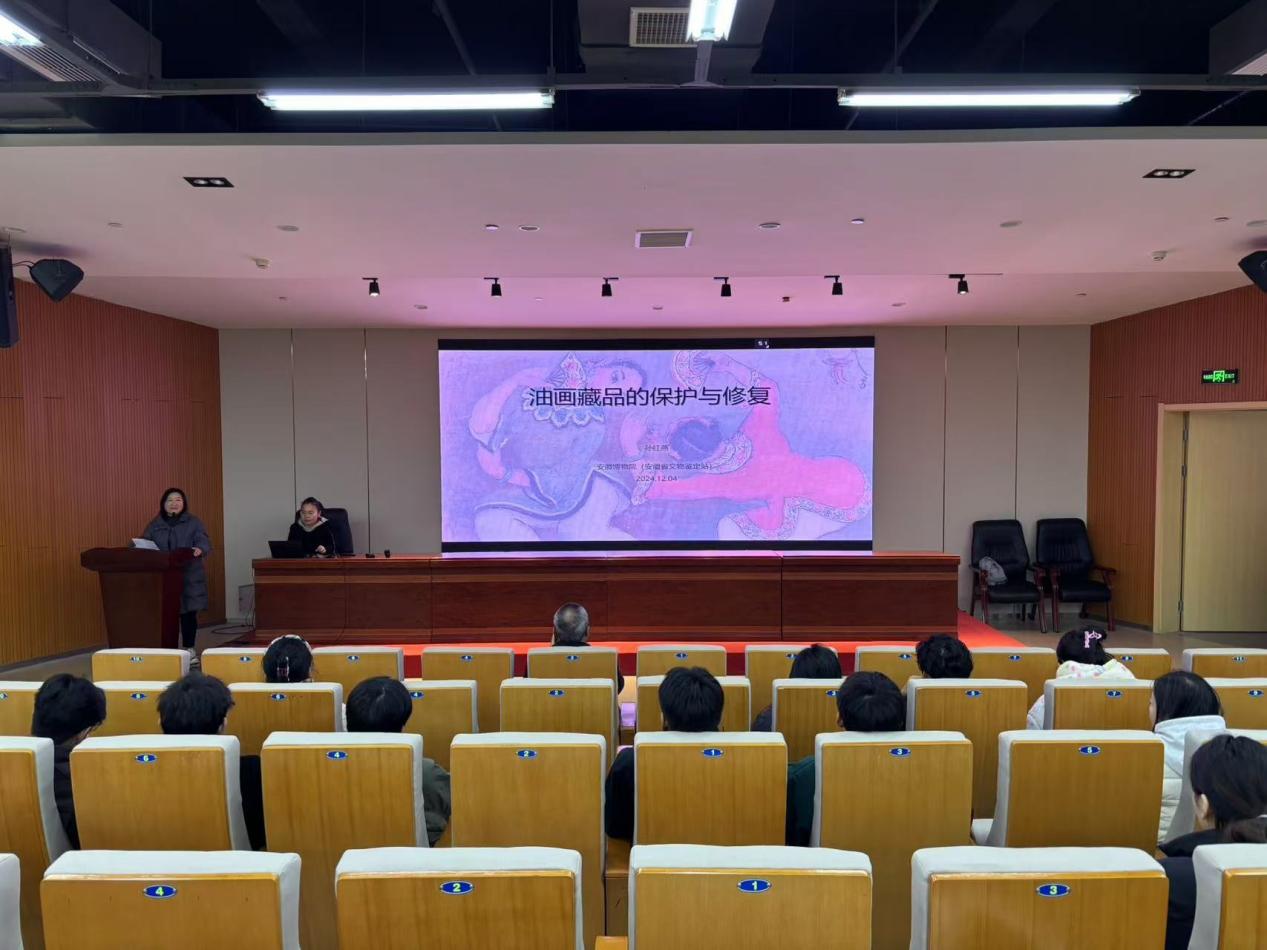 124安徽省博物院副研究馆员孙红燕受邀在美术楼报告厅为绘画专业师生做主题为《油画藏品的保护与修复学术讲座本次讲座由美术学院副院长李李主持。
