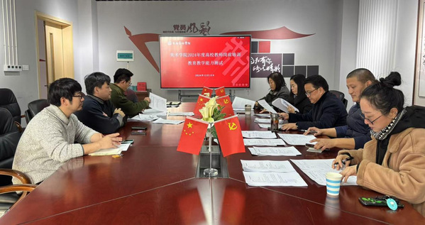 12月13日下午,美术学院在314会议室开展2024年度高校教师岗前培训教育教学能力测试。学院党总支书记陈明海、学院副院长李李及相关教研室主任担任本次测试评委。